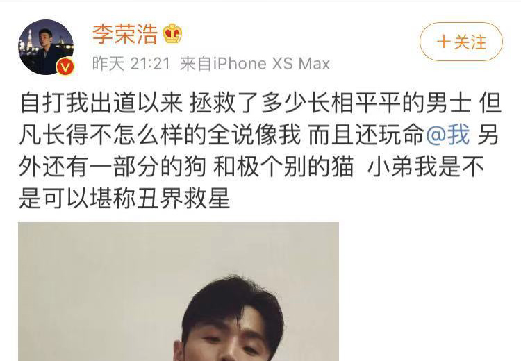 李荣浩自称是丑届救星:长得不怎样的人都说像我